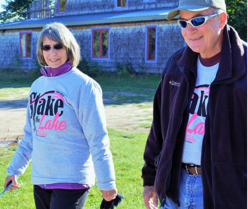 Stake the Lake gets its name from the line of hand-painted garden stakes and crosses that runs along the walk’s route. Each marker bears the name of someone who has fought or been lost to cancer.